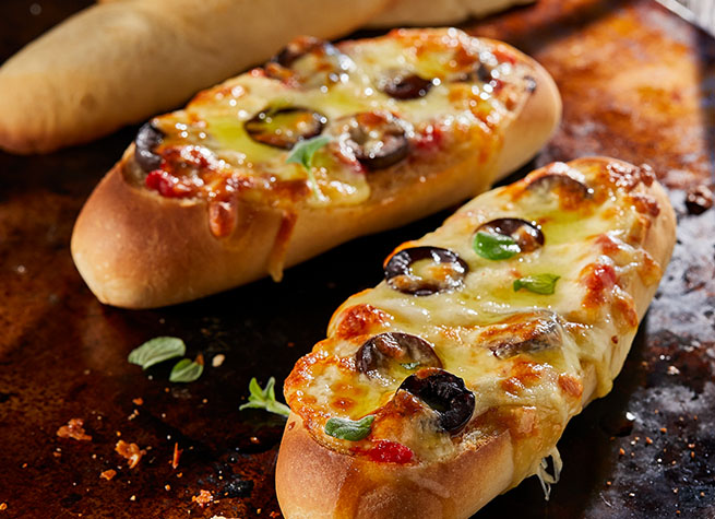 Realizar un corte por lo largo en cada baguette generando una tapa. Ahuecar reservando la miga para otra preparación. Distribuir en el hueco generado el puré de tomates, las aceitunas descarozadas y la muzzarella en cubos, espolvorear con orégano a gusto y ajustar con una pizca de sal de ser necesario. Rociar con un hilo de Aceite de Oliva Selección Natura. Disponer las baguettes sobre una placa para horno, distribuir las tapas en un costado y llevar a horno precalentado fuerte hasta que la muzzarella se haya fundido y el pan ligeramente desecado. Retirar y servir las baguette pizzaiola calientes cubiertas un poco con la tapa de pan.