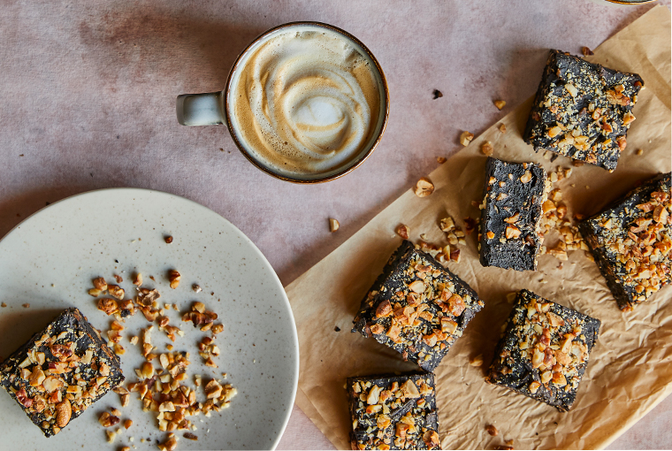 Cubrir un molde de 20x20 cm. con papel manteca lubricado con Rocío Vegetal Natura. Verter la mezcla, decorar con los frutos secos restantes y llevar al horno durante 20-25 minutos aproximadamente hasta lograr la completa cocción. Retirar, dejar enfriar y servir.