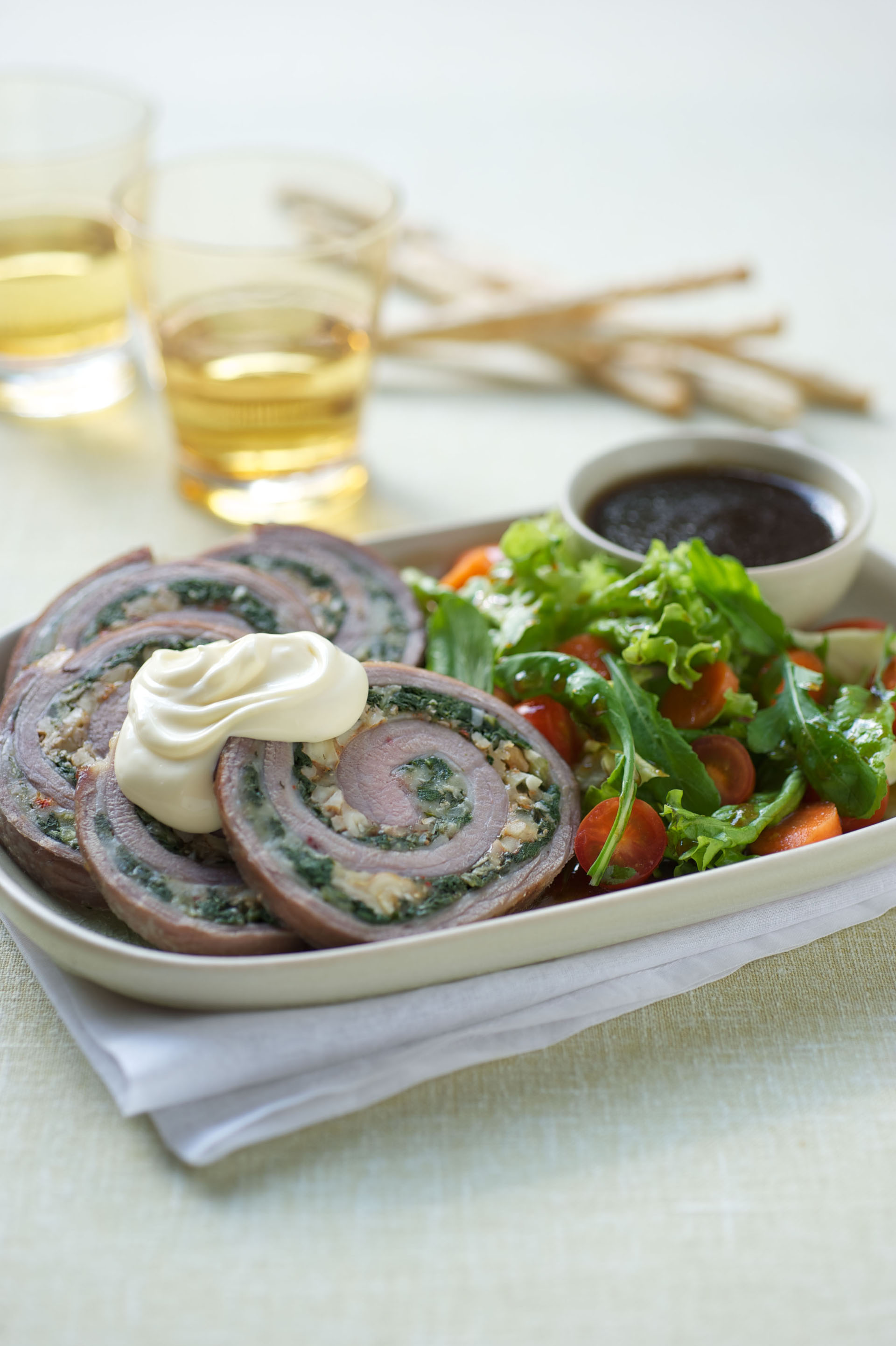 Matambre arrollado con ensalada fresca y aderezo agridulce
