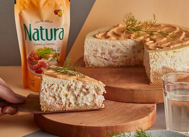 Antes de servir quitar la cintura del molde, pincelar por encima con Salsa Golf Natura y espolvorear con el eneldo.