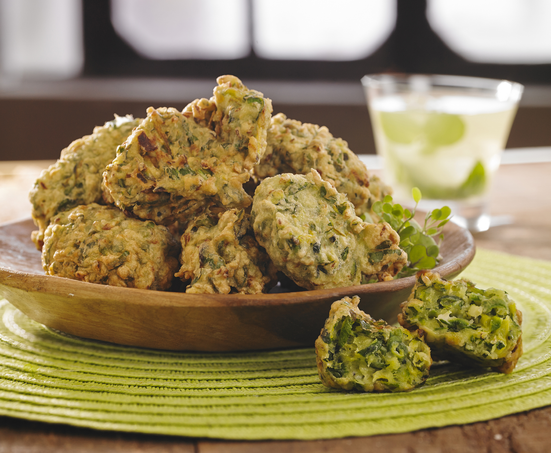 Retirar los buñuelos con una espumadera y disponerlos sobre una fuente con abundante papel absorbente. Servir caliente.