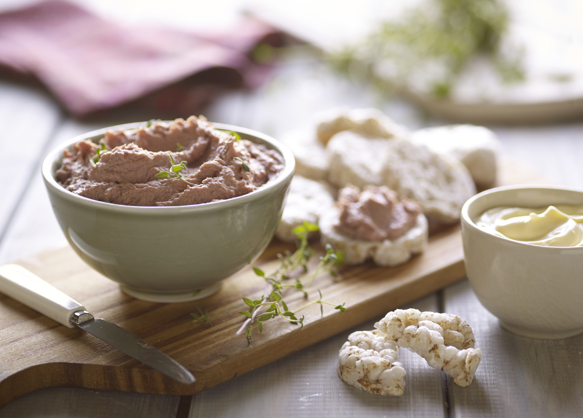 Lubricar con Rocío Vegetal Natura moldecitos individuales. Cubrirlos con el paté y llevar a heladera por 3 a 4 horas.